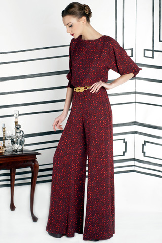 This jumpsuit was part of the Alice + Olivia Fall 2011 Ready-to-Wear collection shown on Valentines Day at the Plaza Hotel in New York. The collection was full of girly dresses and funky separates; day-to night looks, some with fur details and sequined embellishments.