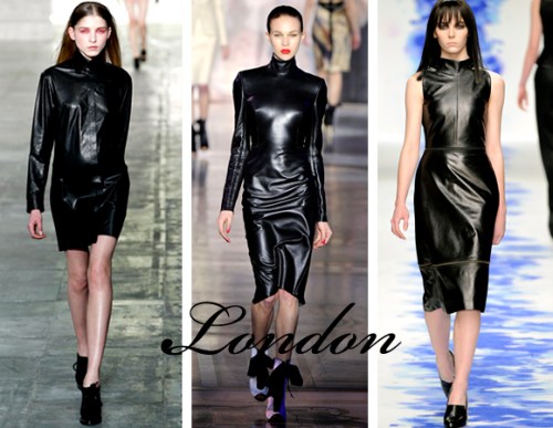 Fashion East put forth this leather shirt dress on the runway, while Giles opted for a catwoman-esque look, and Osman for a simple sleeveless dress.