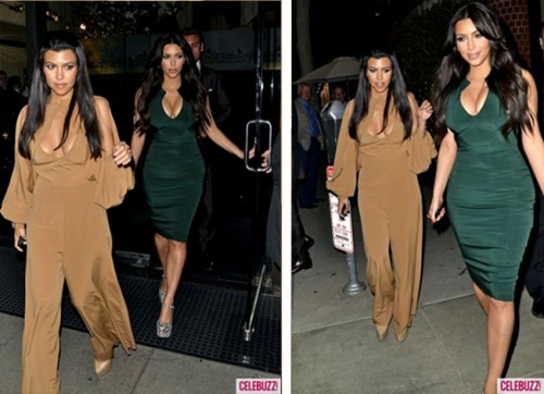 On Thursday night, Kim and Kourtney Kardashian were interviewed in Los Angeles by NBC’s Jay Leno. Afterwards, they joined Kourtney’s husband Scott Disick for dinner at Mr. Chow in Beverley Hills, and later dropped by a Tom Ford boutique. Kourtney attended all three events wearing this gold, wide-legged jumpsuits. Fashion critics have been quite harsh on this outfit choice, however, with a bit of alteration, Kourtney could have pulled off an exquisite and glamorous look! The wide-legged and high-waisted bottom half of the outfit is perfect; no editing required. But when it’s thrown together with a droopy low neck and cut-out cuffed sleeves, Kourtney’s look goes from being eye candy to uncomely.