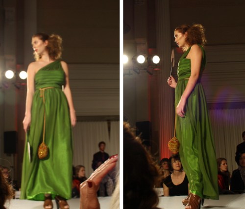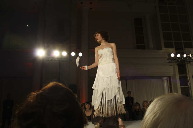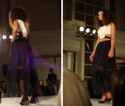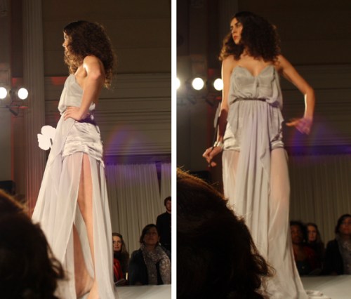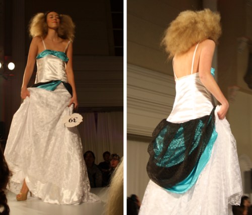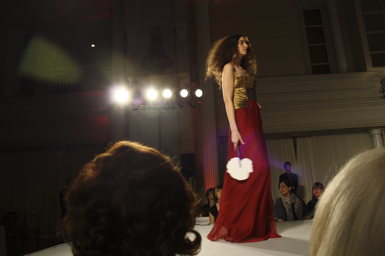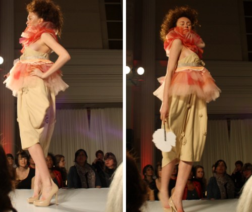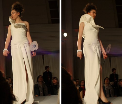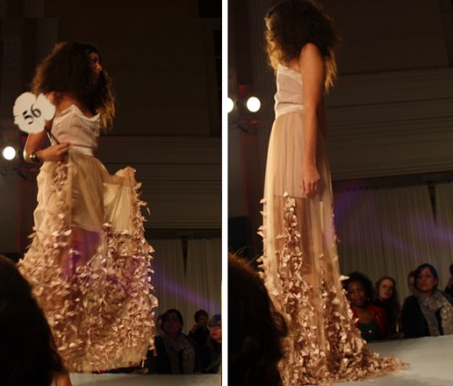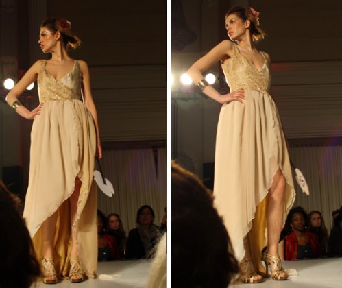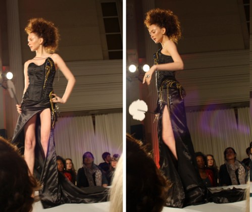 Proceeding Mass Exodus 2011: Zenith+Nadir, where graduating students in Ryerson’s fashion design program showcased their collections, the fashion school held another fashion show this Wednesday. Second and third-year students in the fashion design program unveiled some of their dresses at a runway show that took place at the Arcadian Court in downtown Toronto.