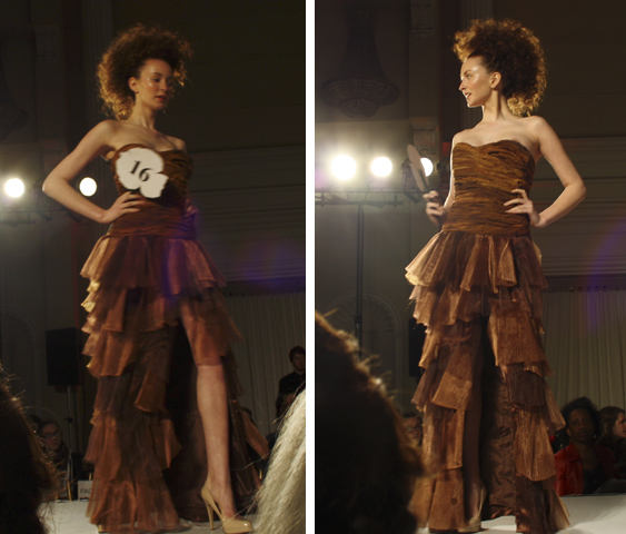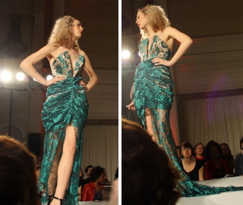 During the eveningwear show, it became clear that students learn a lot in two to three years of studying fashion design at Ryerson University. Designs were largely experimental; many students incorporated lace, trails, tiers, drapes and cut-outs in their dresses. Some were hits and some were misses, but overall the event showed a range of young fashion talents. Here are some of the student designs that made their way down the catwalk: