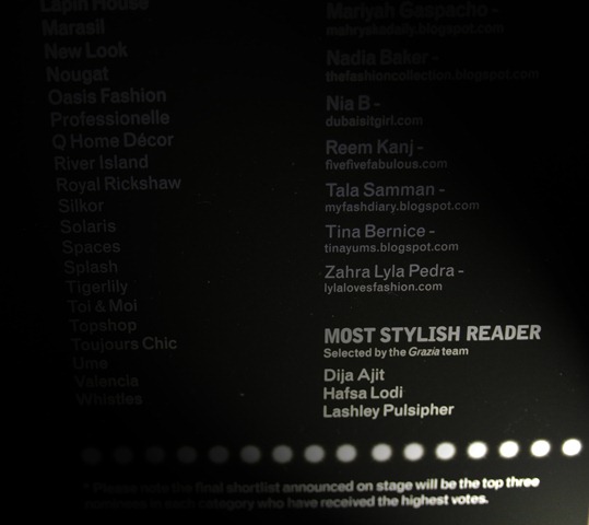 Along with the general style award categories, hundreds of Grazia readers sent in their pictures as part of the magazine’s “Most Stylish Reader” award, and I was honoured to be one of the top three shortlisted contestants.