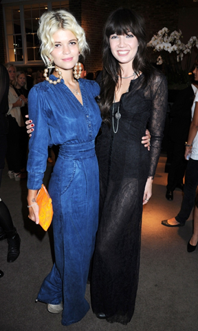 For London’s “Fashion’s Night Out,” British model and socialite Pixie Geldof stepped out in this denim jumpsuit. Rather than looking hillbilly hick, ( a vibe that many denim jumpsuits tend to give off) she looks fashion-forward and chic. The long sleeves, wide legs, slight Chinese collar and fitted waist may seem to be better suited in a silk or chiffon fabric, but the use of denim gives the outfit some spunk and originality.